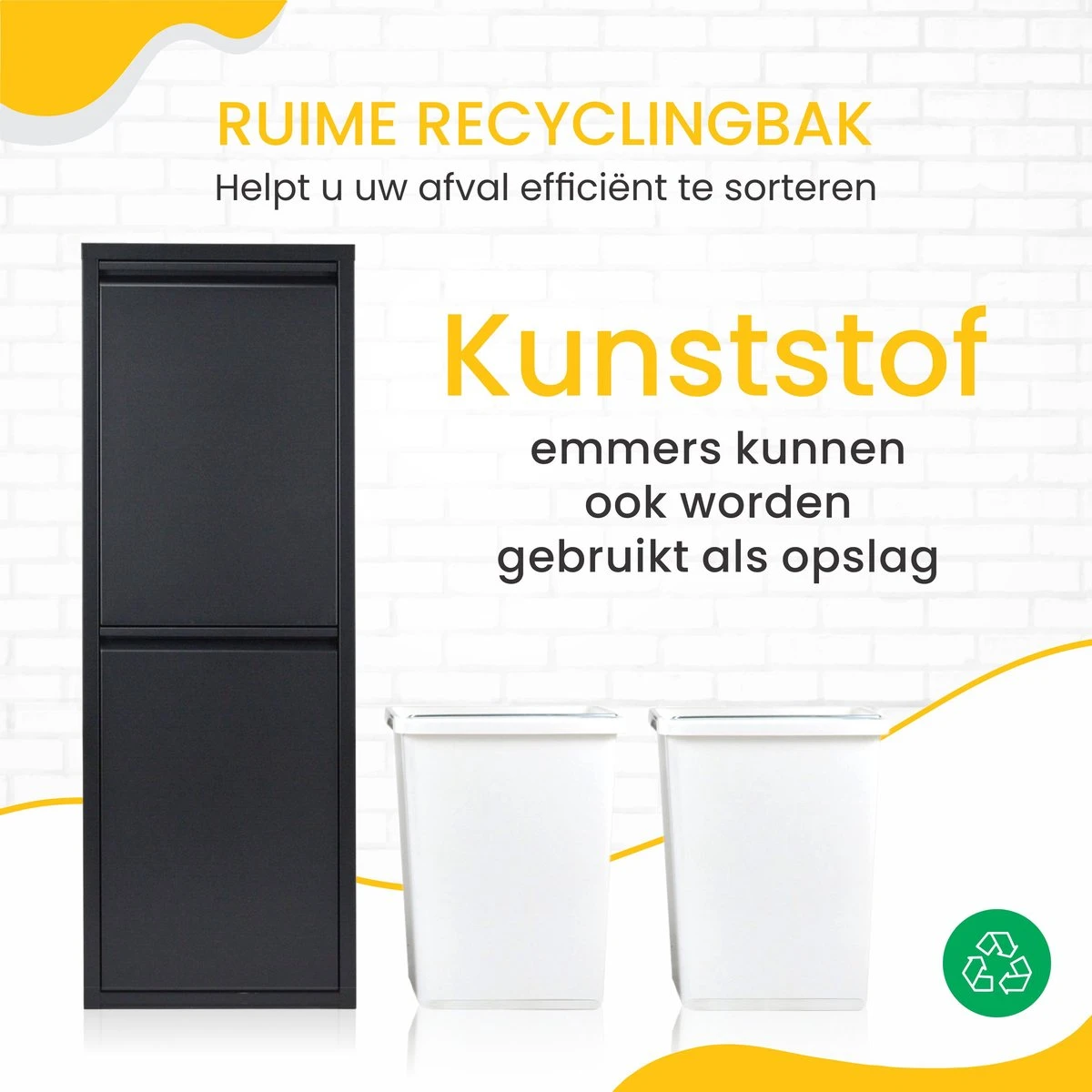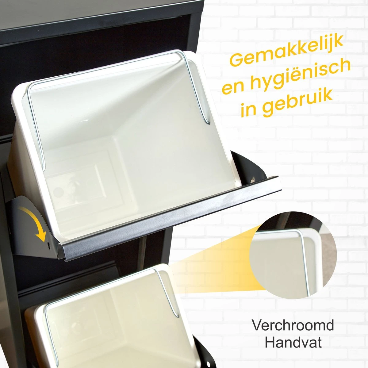 - Binnenemmer: bij de levering inbegrepen zijn, afhankelijk van de maatvarianten, 2-4 robuuste emmers van kunststof. De binnenemmers beschikken over een verchroomde draagbeugel, die een eenvoudige en hygiënische bediening garandeert.