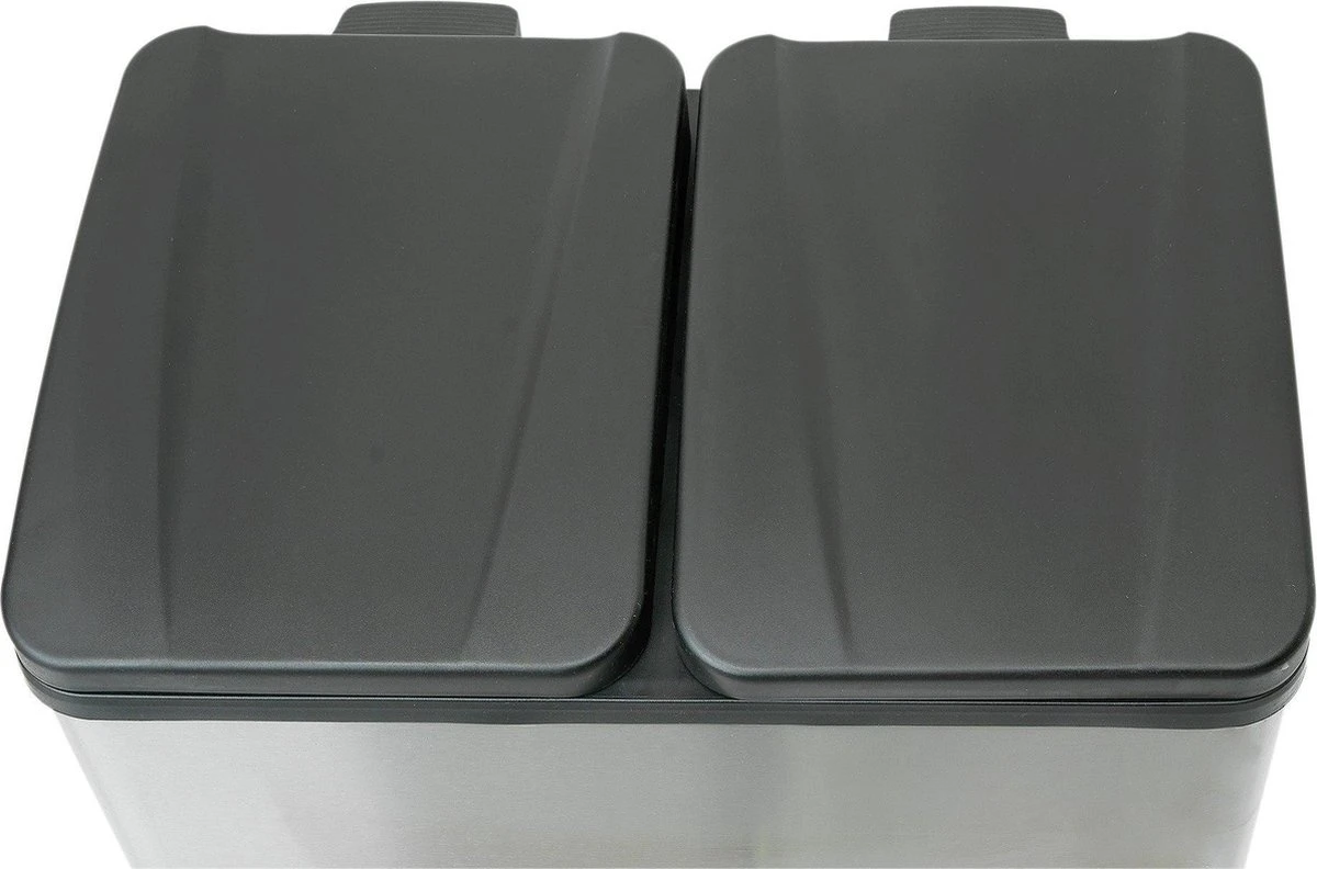 Sorteer uw recyclebare materialen netjes met deze prullenbak van 60 liter. Het heeft twee secties om uw afval te scheiden en wordt bediend met een voetpedaal voor hygiënisch gebruik. In een slim roestvrijstalen ontwerp, zal deze bak uw huishoudelijk afval netjes uit het zicht bewaren tot de ophaaldag.