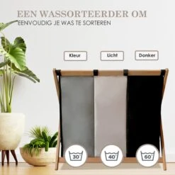 Moderne Wasmand Met 3 Vakken – Aluminium Wassorteerder – Opvouwbaar – 118L – Laundry Basket