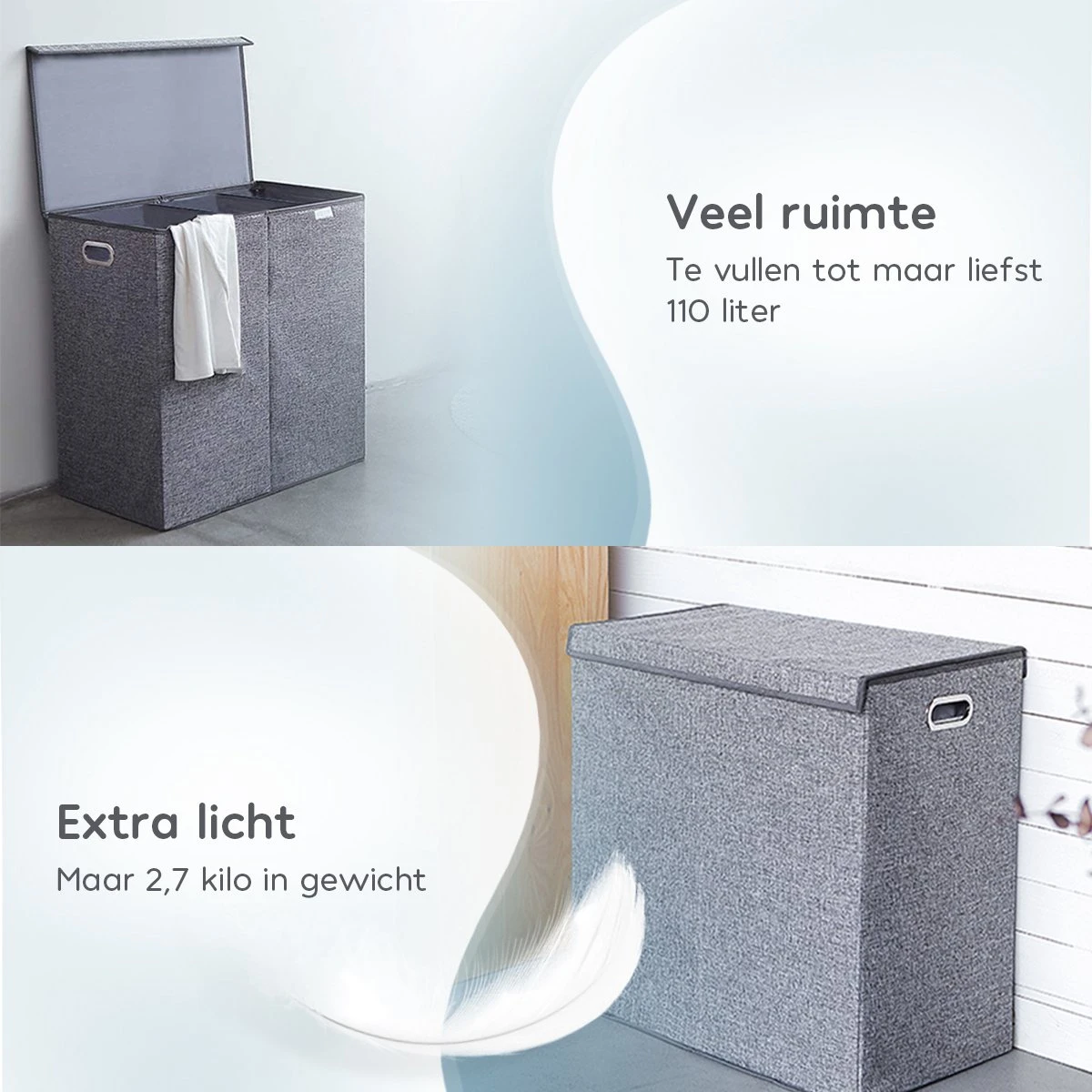- Stevig en duurzaam – De wasmand is gemaakt van duurzaam Oxford stof. Dit is een lichtgewicht en waterdicht materiaal dat bestand is tegen beschadigingen en vuil.